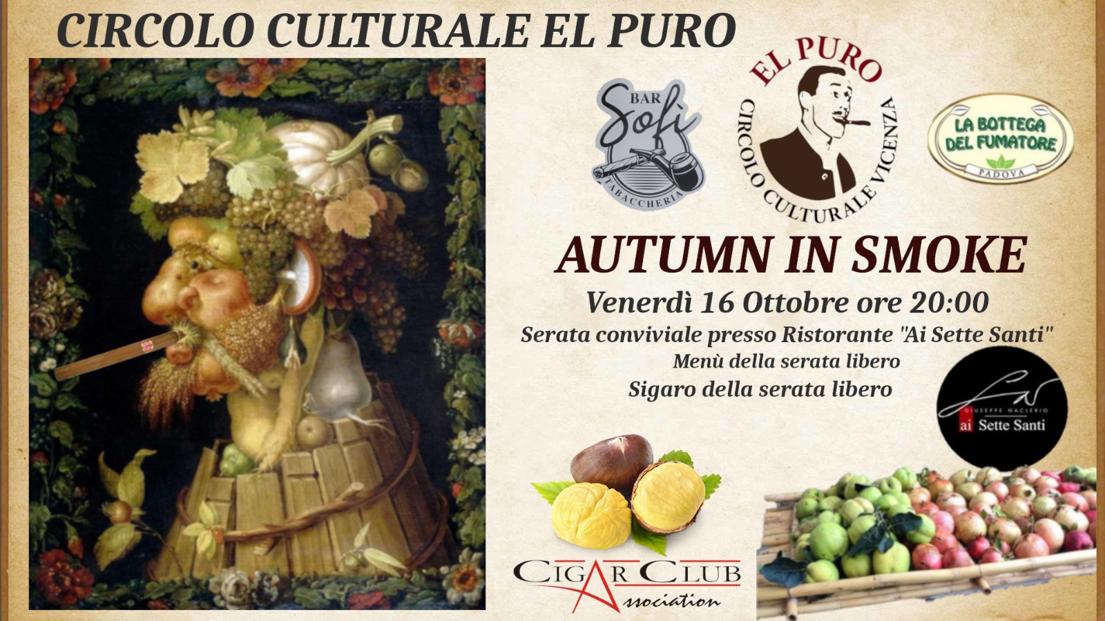 AUTUMN IN SMOKE il Circolo Culturale El Puro presenta AUTUMN IN SMOKE Serata conviviale… presso Ristorante Ai Sette Santi menu della serata libero Sigaro della […]